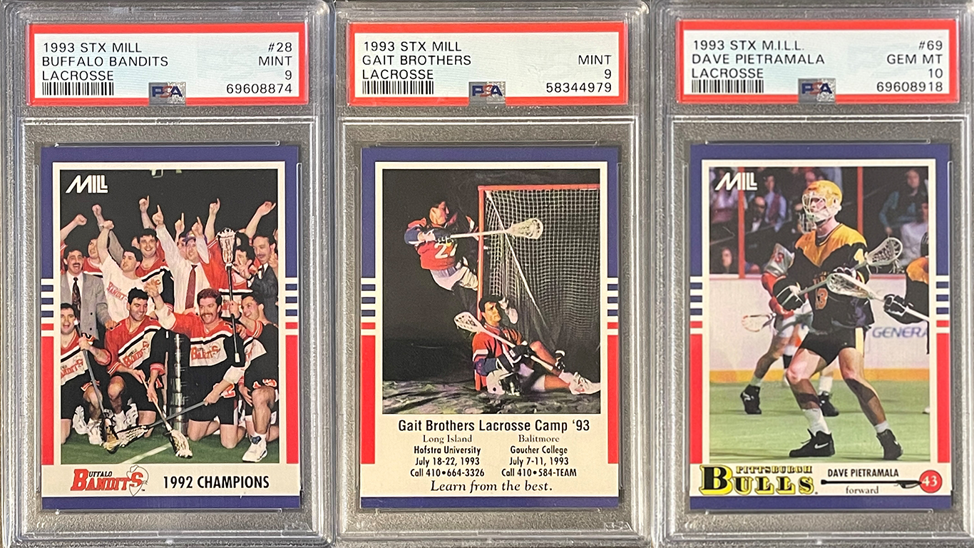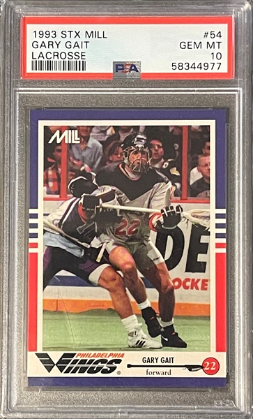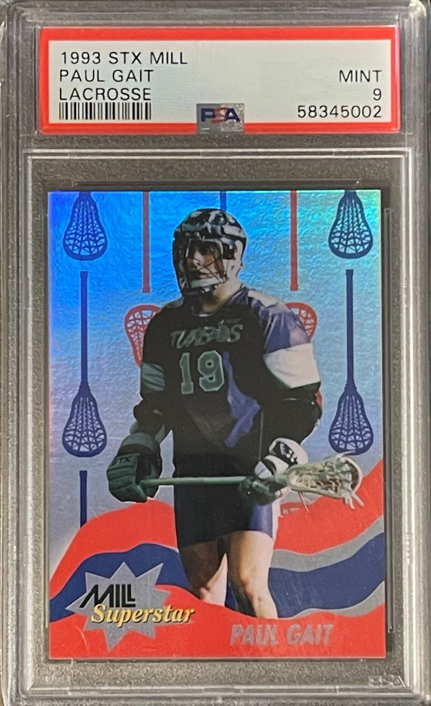 These cards are not necessarily rare. While they weren’t produced anywhere near the quantities of other sports of the era, multiple eBay listings are typically active at any given time. Unopened product, however, has become a valued rarity. Once offered on discount at $10-or-less per box, collectors would be hard-pressed to find intact foil boxes at much less than $1,000 each. And as unopened material is likely the best opportunity to obtain high-grade cards, that price may not be as expensive as it seems. Current eBay listings for PSA 9 examples of the #54 Gary Gait cards range from $499-$890. The PSA Population Report shows that only four #54 Gary Gait cards have ever received a PSA 10 designation, the company’s highest grade.Â