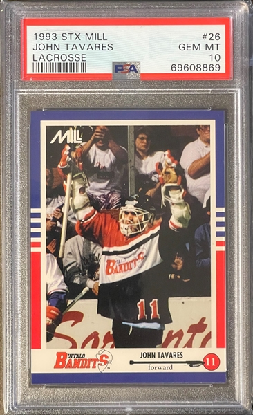 The most important element of this set, other than the attractive design and it being the first major lacrosse product in several decades, is the checklist. This set accounts for the first trading cards ever issued for many of the game’s biggest names. As the 1986 Fleer set contains rookie cards for Michael Jordan, Hakeem Olajuwon, Isaiah Thomas, Charles Barkley and several others, 1993 STX MILL contains the first cards of Gary and Paul Gait, Tim Soudan, Derek Keenan, Darris and Rich Kilgour, John Tavares, Vinny Sombrotto, Kevin Finneran, Dallas Eliuk, Tony Resch, Dave Pietramala and others. For a 70-card checklist, this set is dense with important rookie cards.